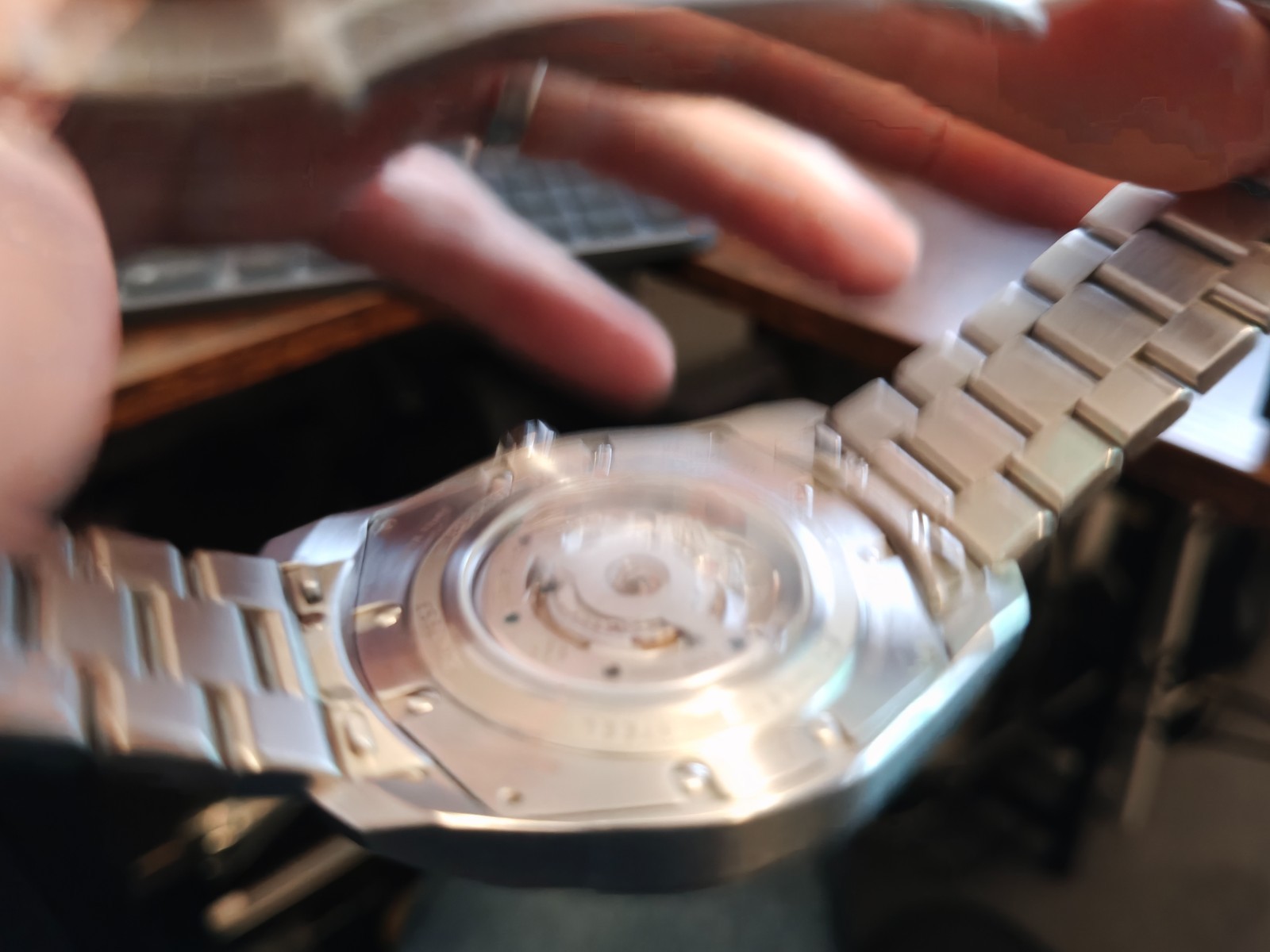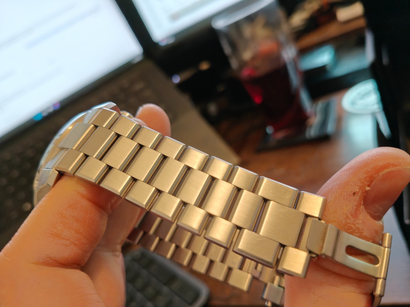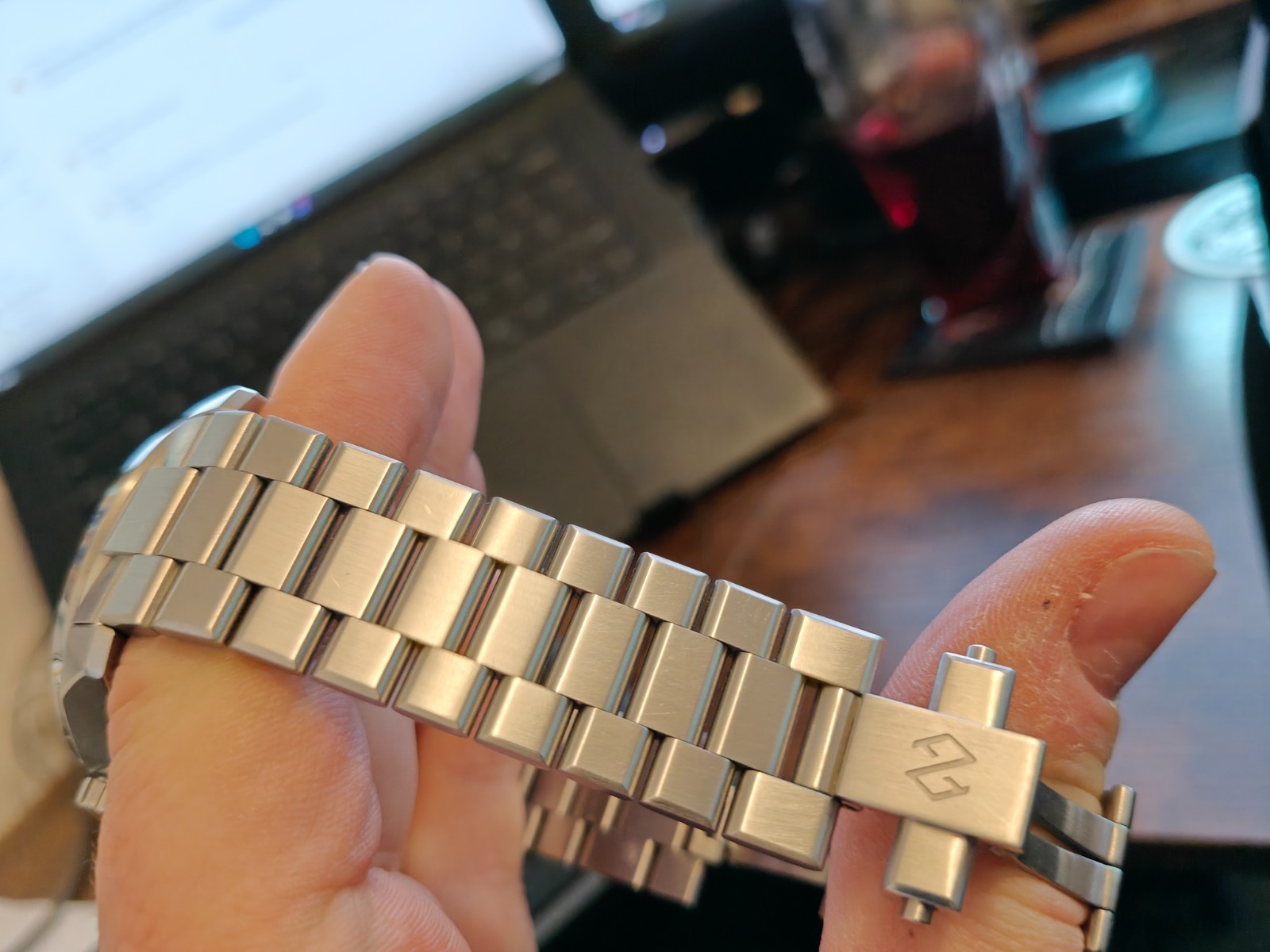 Lovely watch with some fantastic engineering, I’m just finding it a tad to big for my wrist. Has a few desk diving marks on the bracelet but only visible under bright light. I have tried to photograph the light marks but they’re hard to see. Generally excellent condition and fully working.